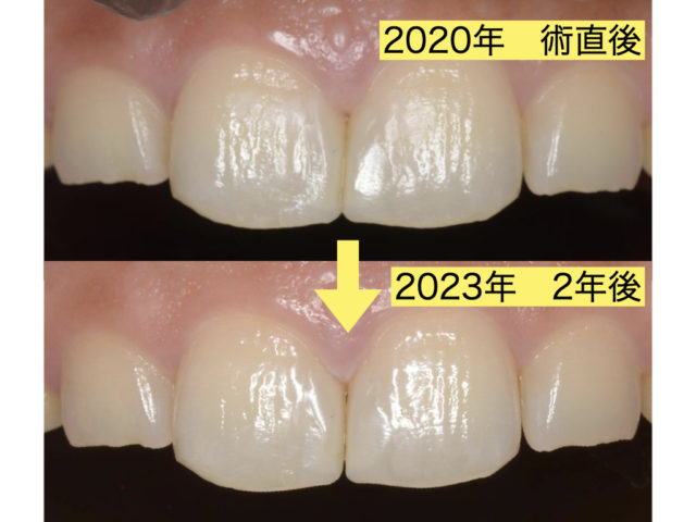 こちらの形態をしている前歯をダイレクトボンディングで改善しました。